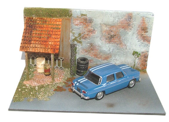 Diorama from l'Eau Rouge of a backyard with a little shelter.