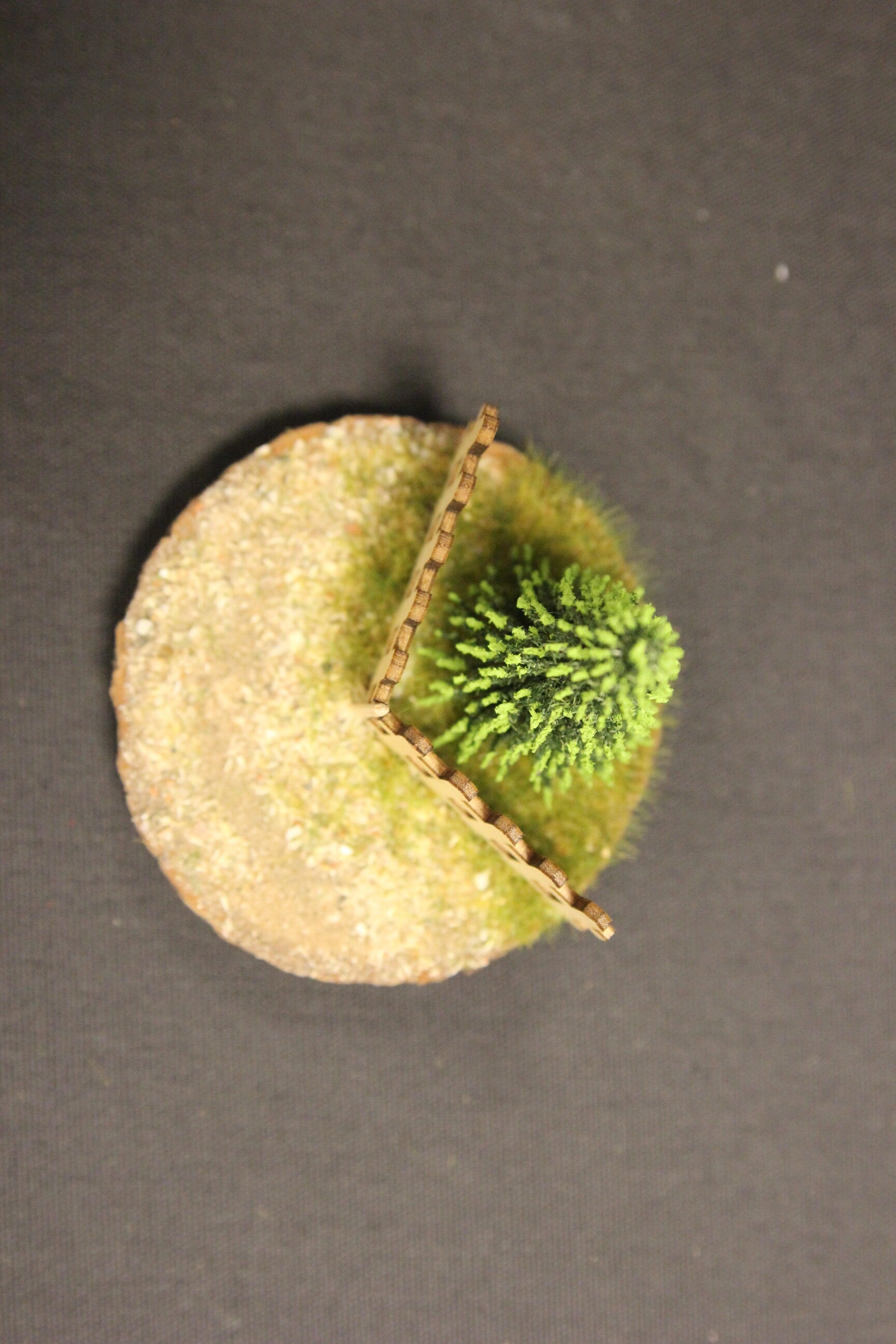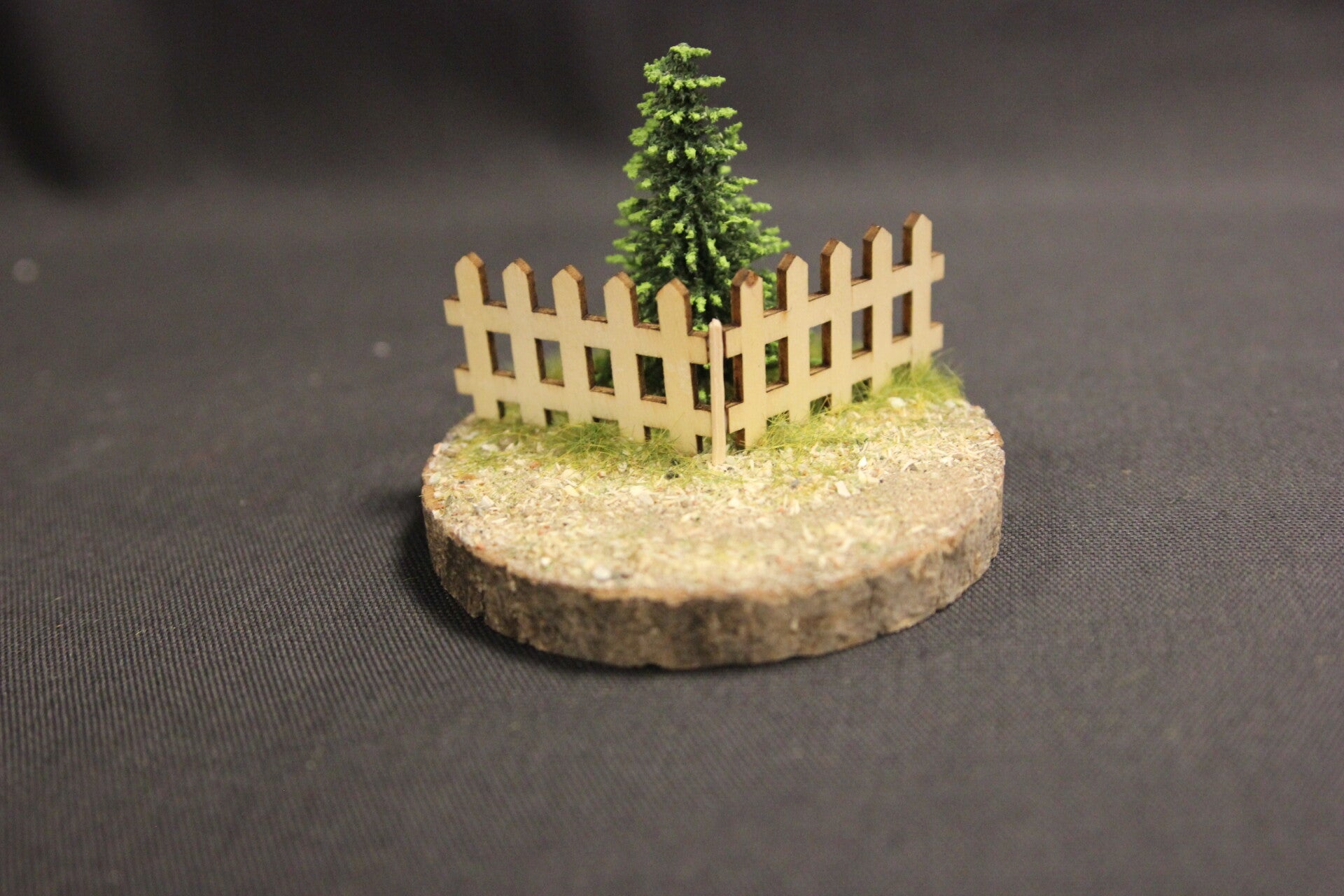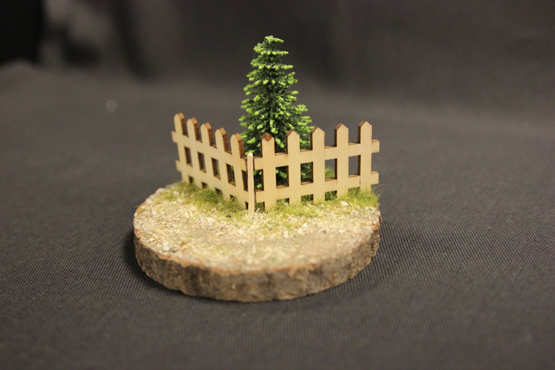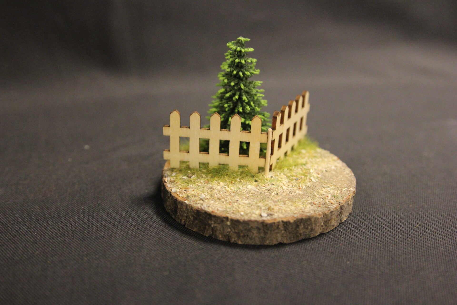 Diorama Country road with fence and tree 1:24 on a slice of wood