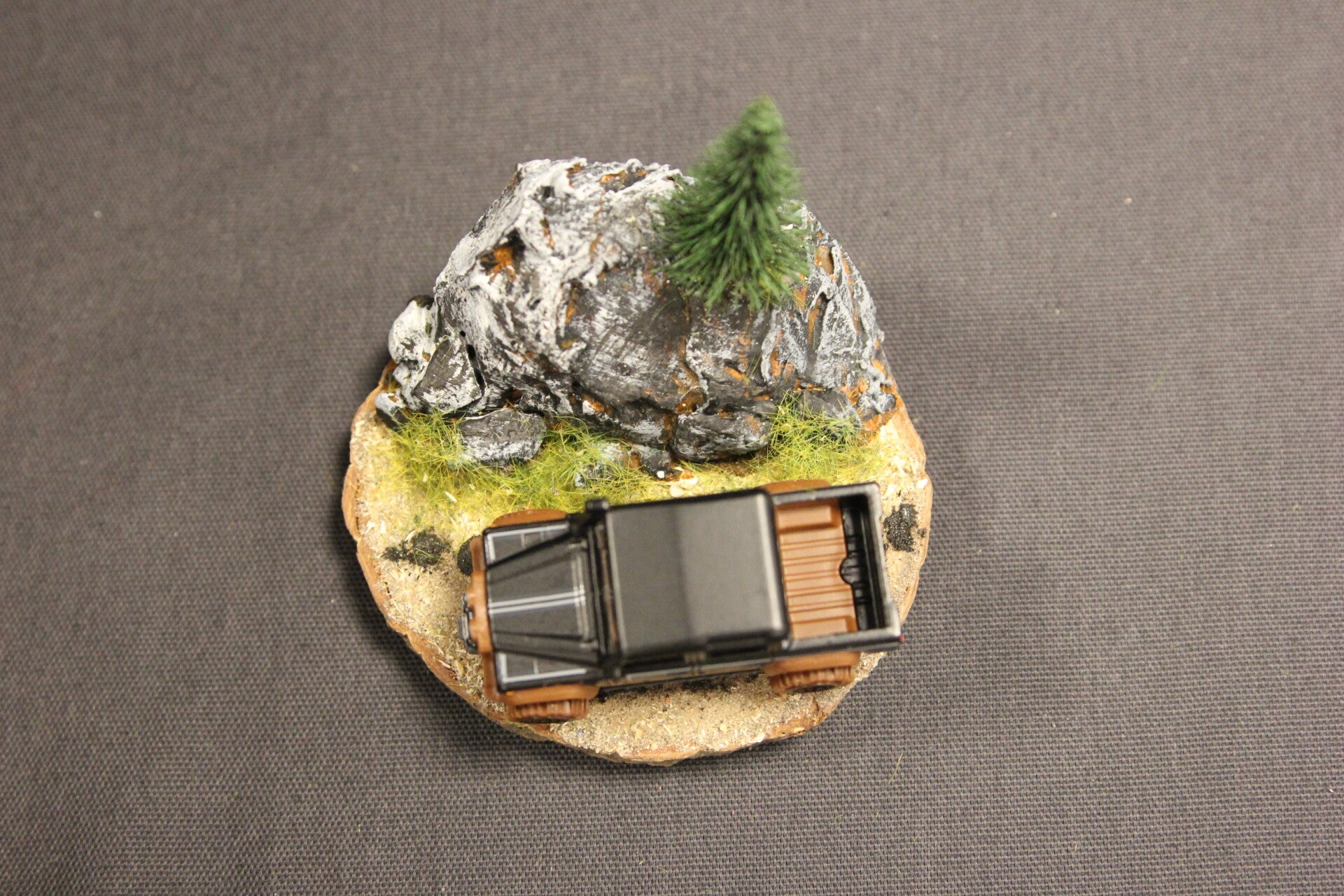 Diorama Mountain Road with rock and tree on a slice of wood 1:64 #1