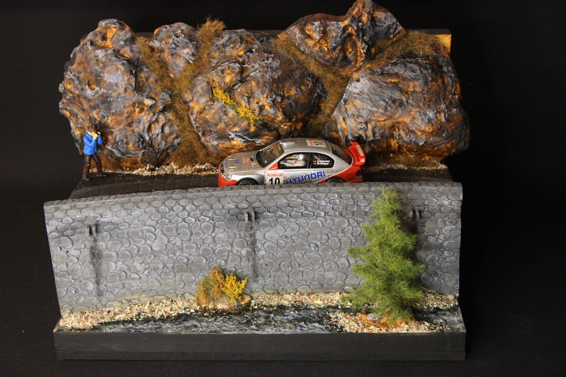 Diorama with SCX Hyundai Accent WRC 2003 1:32 #10 Armin Schwarz (GER) / Manfred Hiemer (GER), Rally Monte-Carlo 2003, 8th place