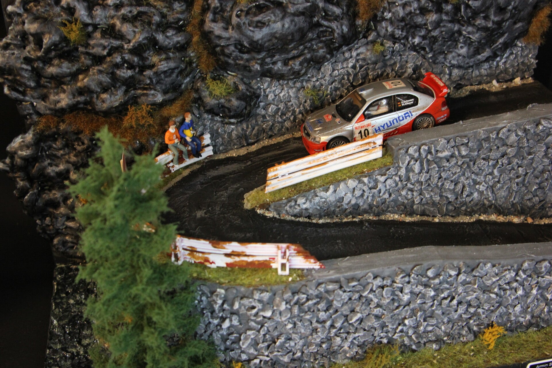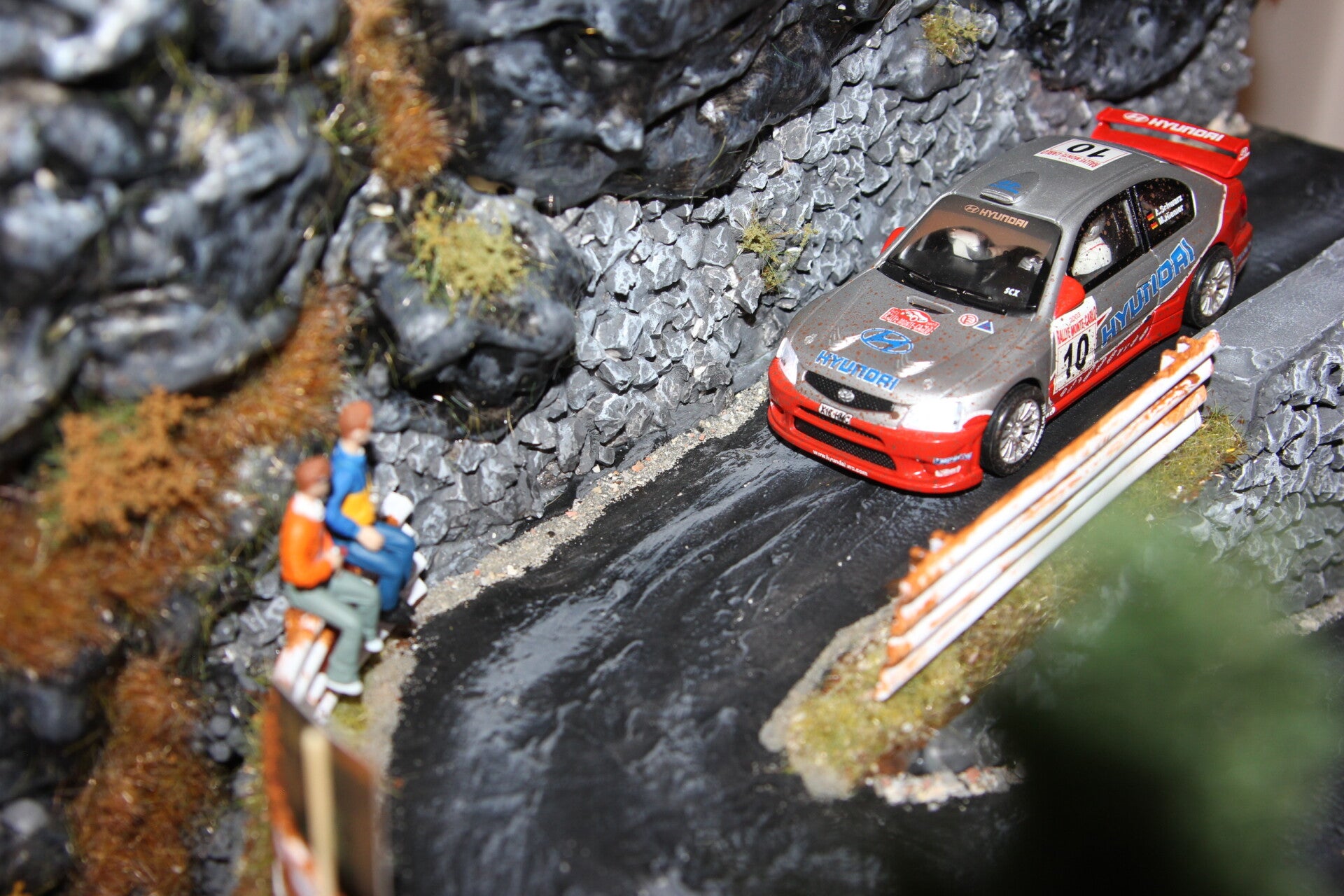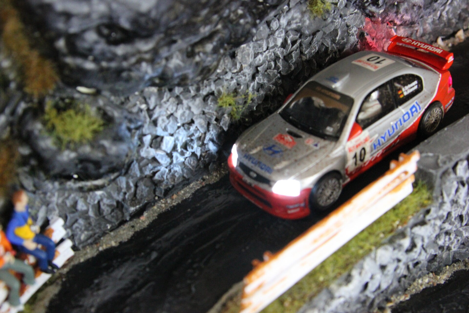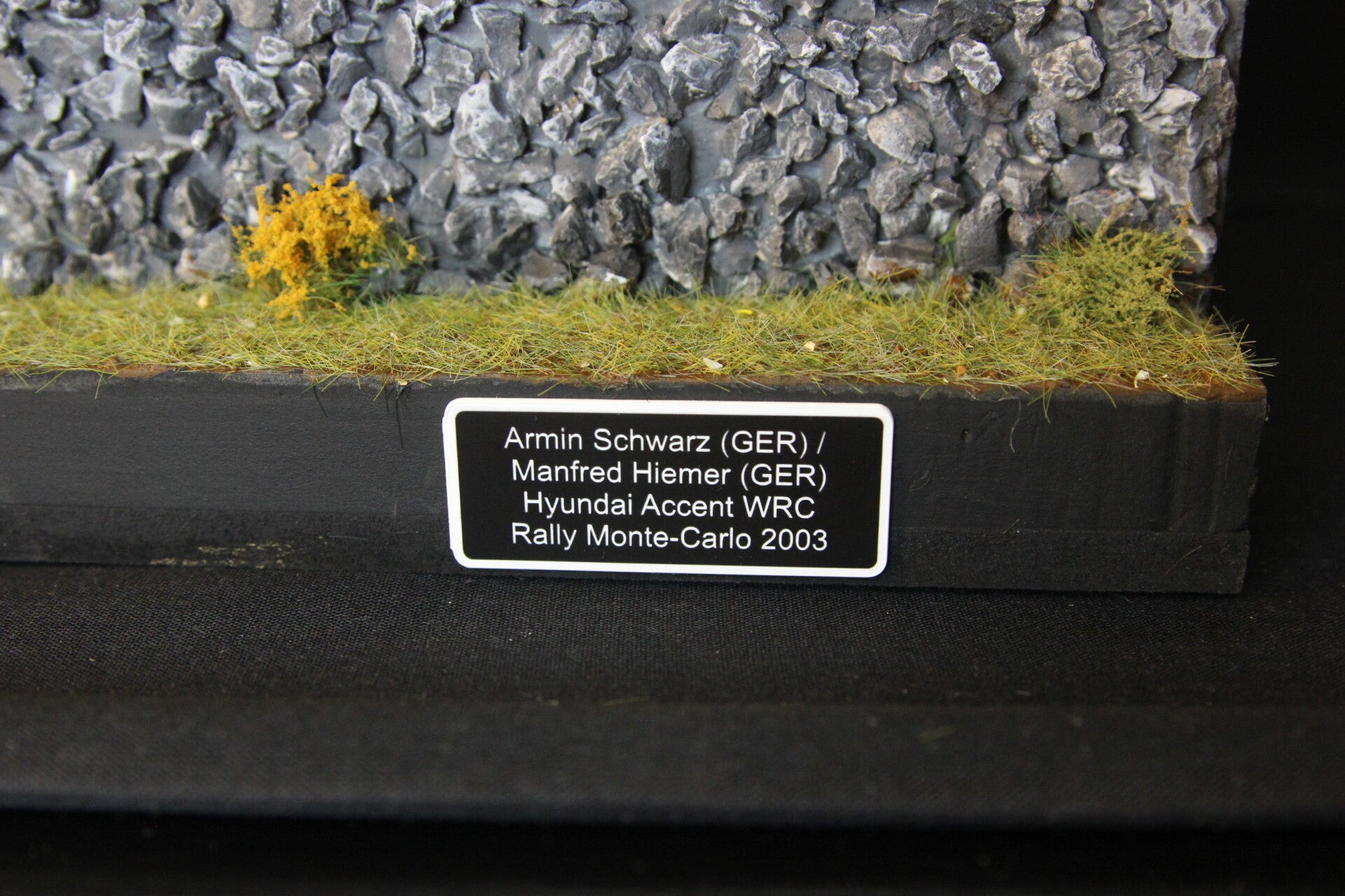 Diorama with SCX Hyundai Accent WRC 2003 1:32 #10 Armin Schwarz (GER) / Manfred Hiemer (GER), Rally Monte-Carlo 2003, 8th place