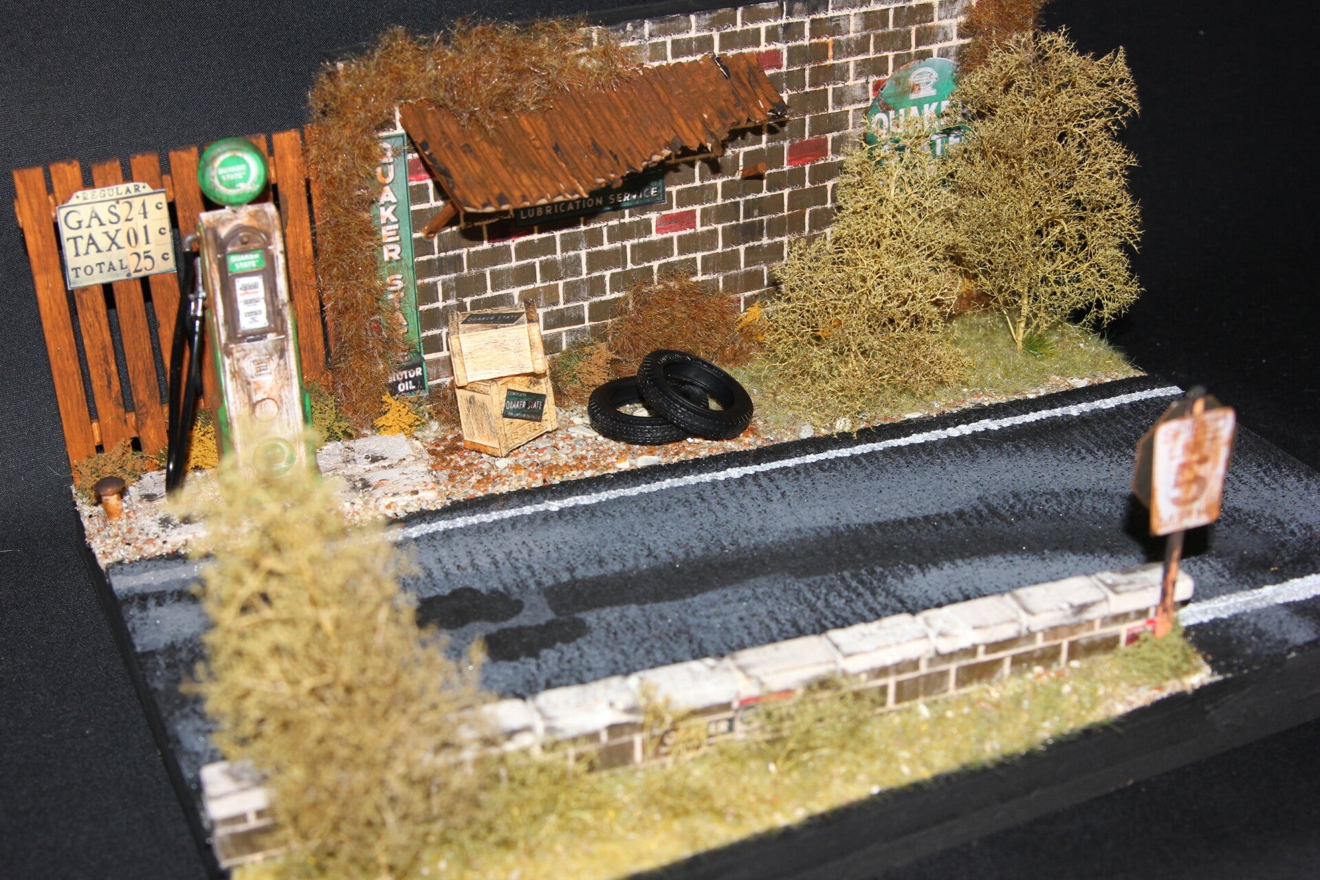 Diorama Abandoned Gas Station 1:18 "Quacker State"