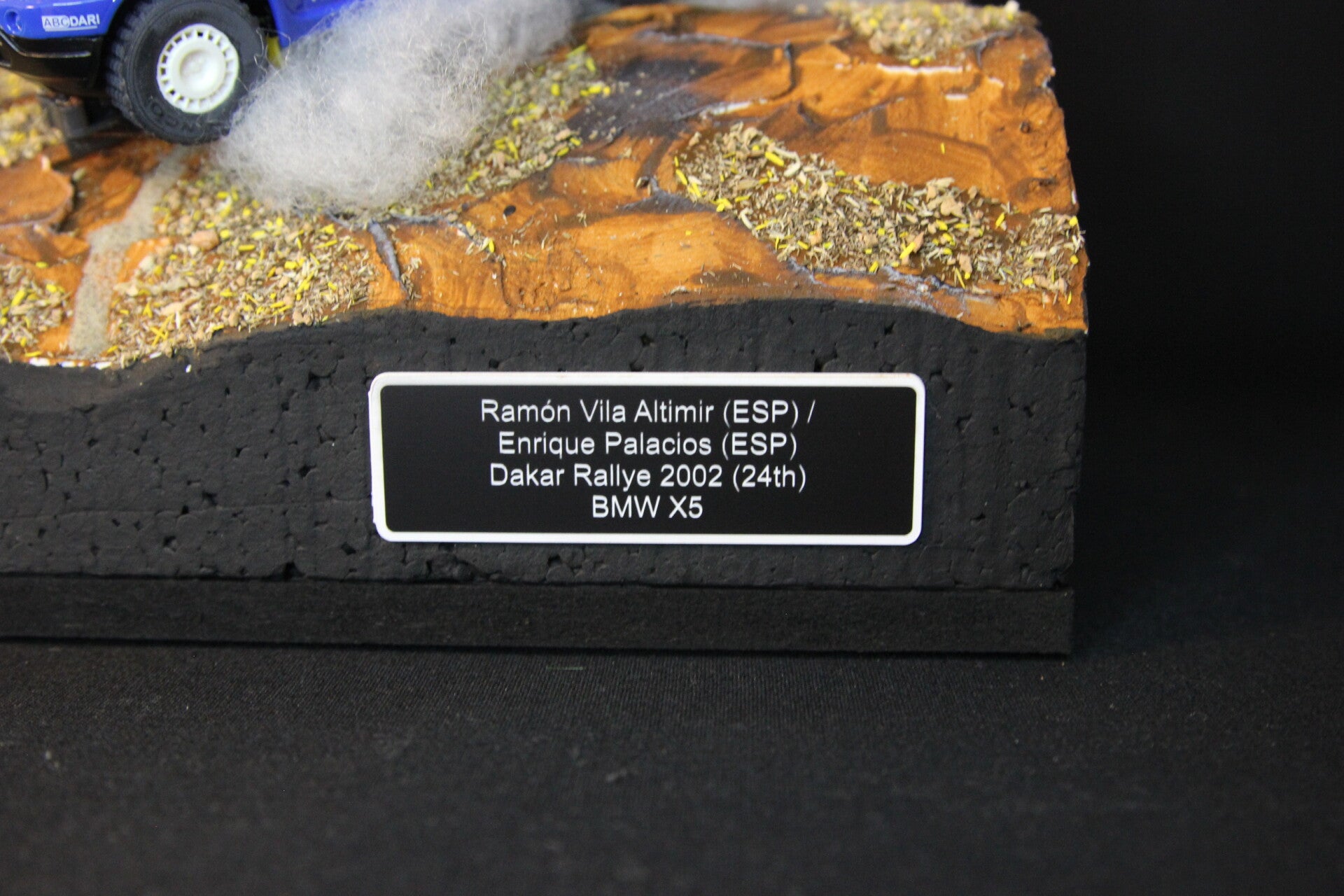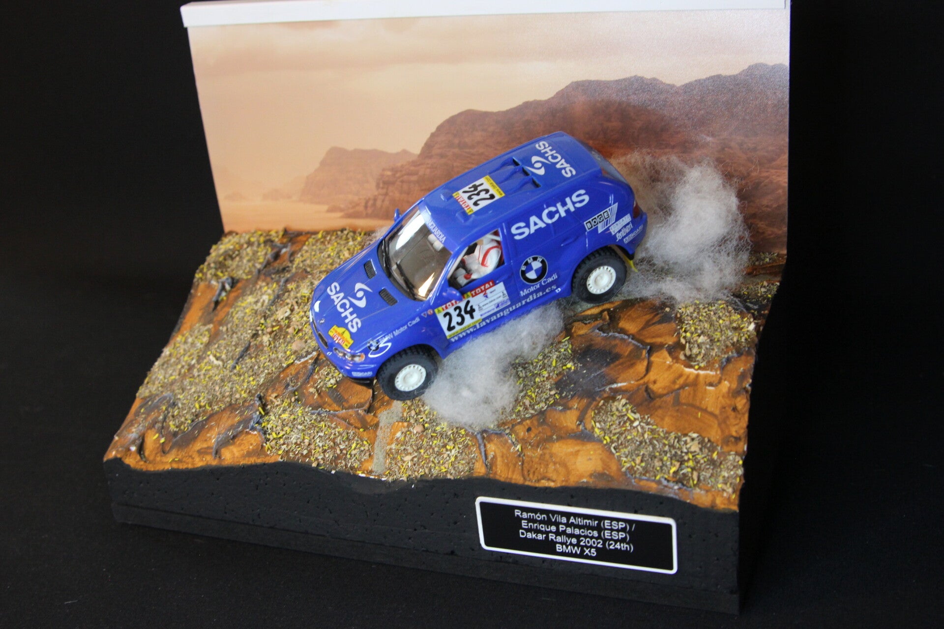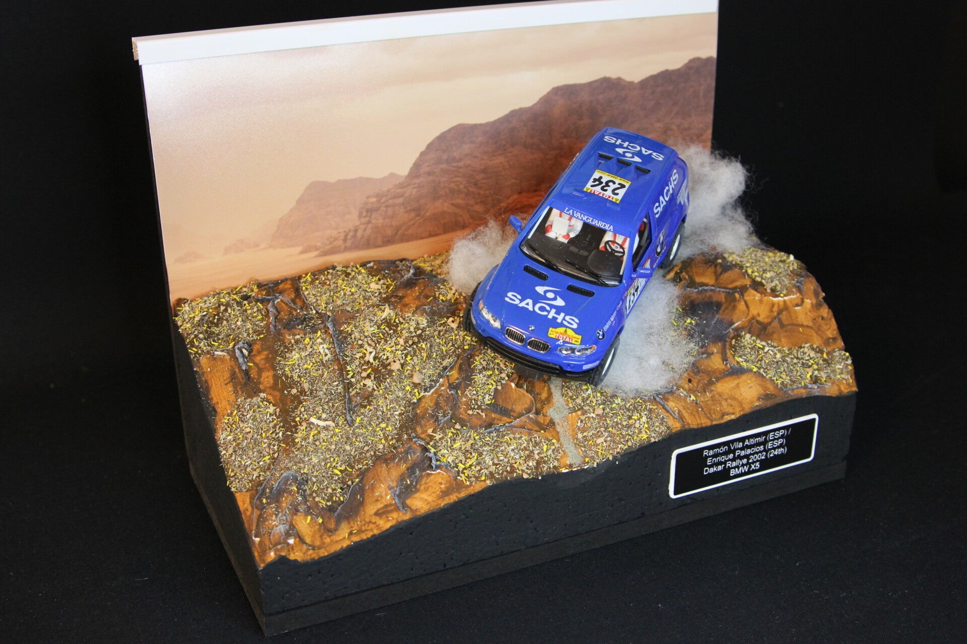 Diorama Dakar Rally 2002 "jumping of a cliff" 1:32 with Ninco BMW X5 #234, Ramón Vila Altimir (ESP) / Enrique Palacios (ESP) 24th place