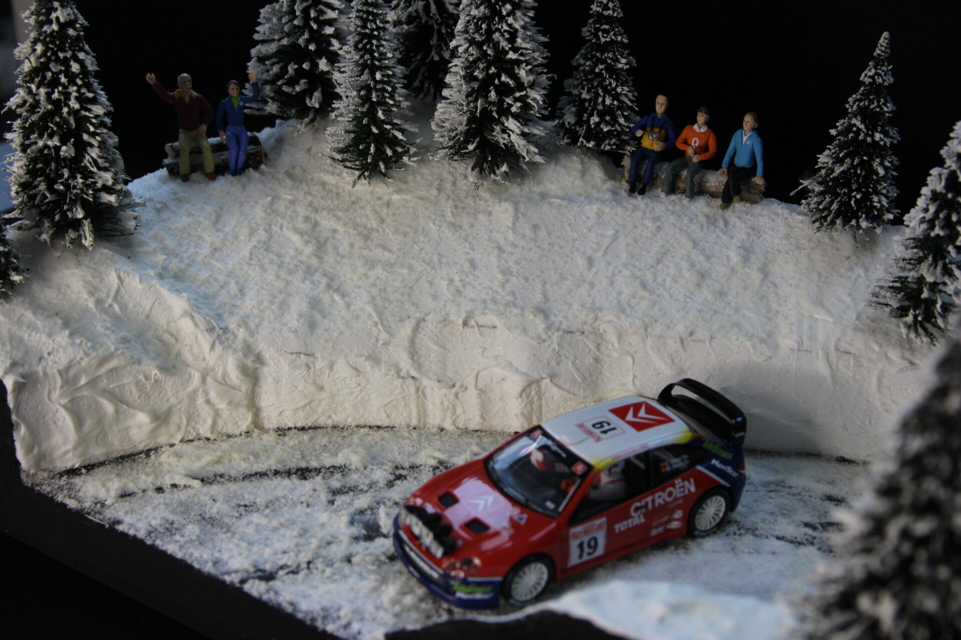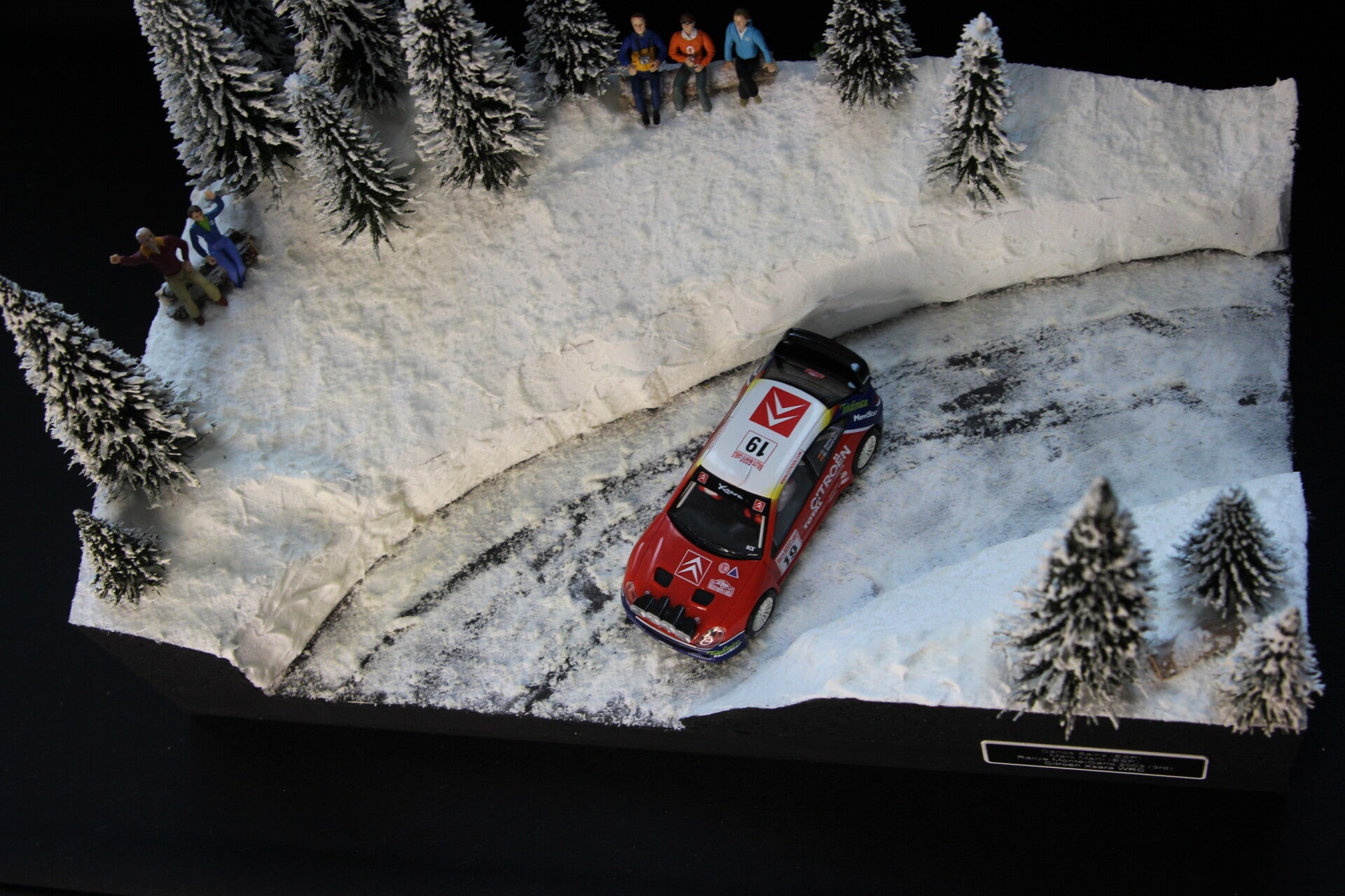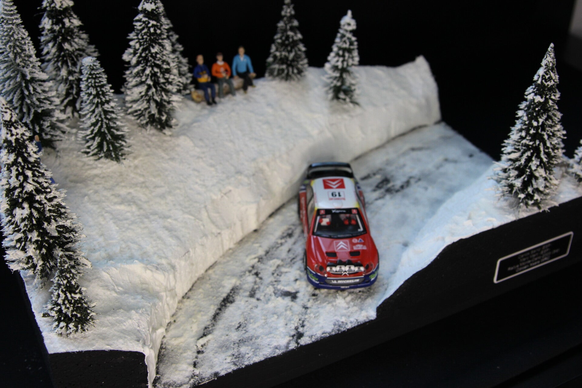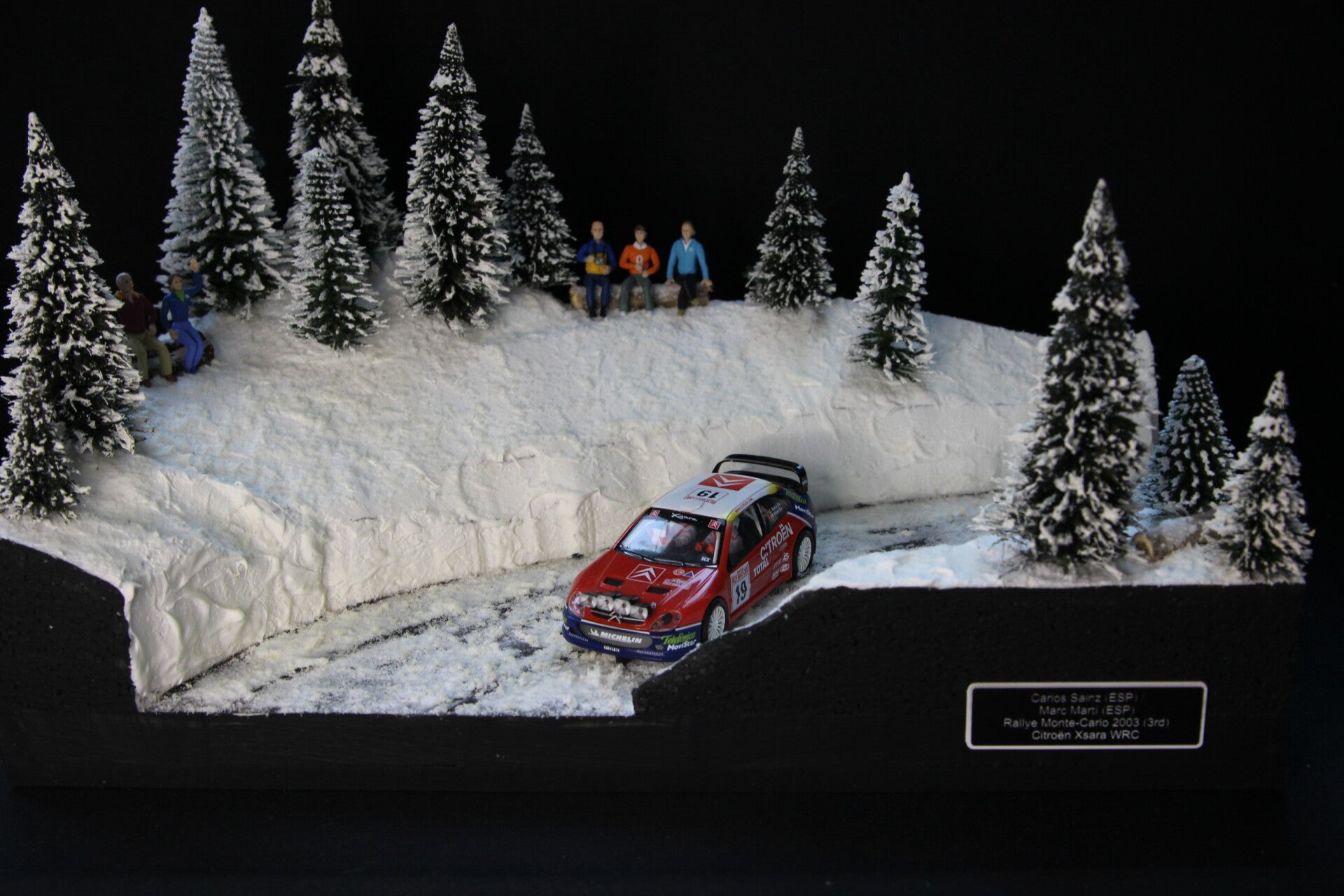 Diorama Rallye Monte-Carlo 2003 with SCX Citroën Xsara WRC #19 1:32 Carlos Sainz (ESP) / Marc Marti (ESP) 3rd place