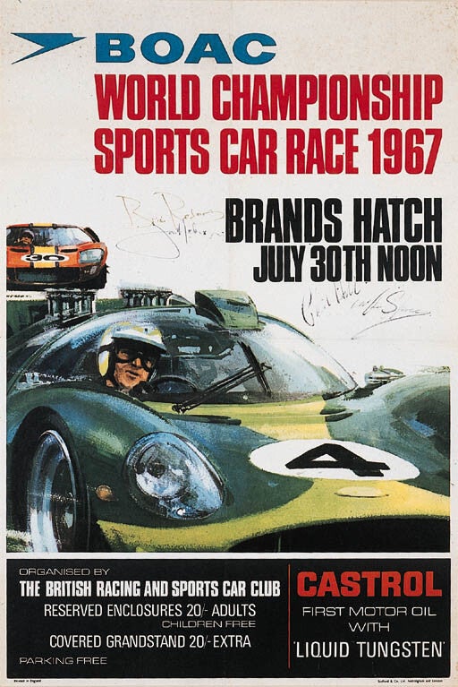 Mooi diorama van de in 1967 op het circuit van Brands Hatch verreden BOAC 500 race.