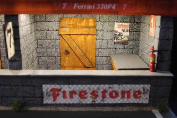 Het diorama is hand gemaakt en voorzien van verlichting in de pitboxen.